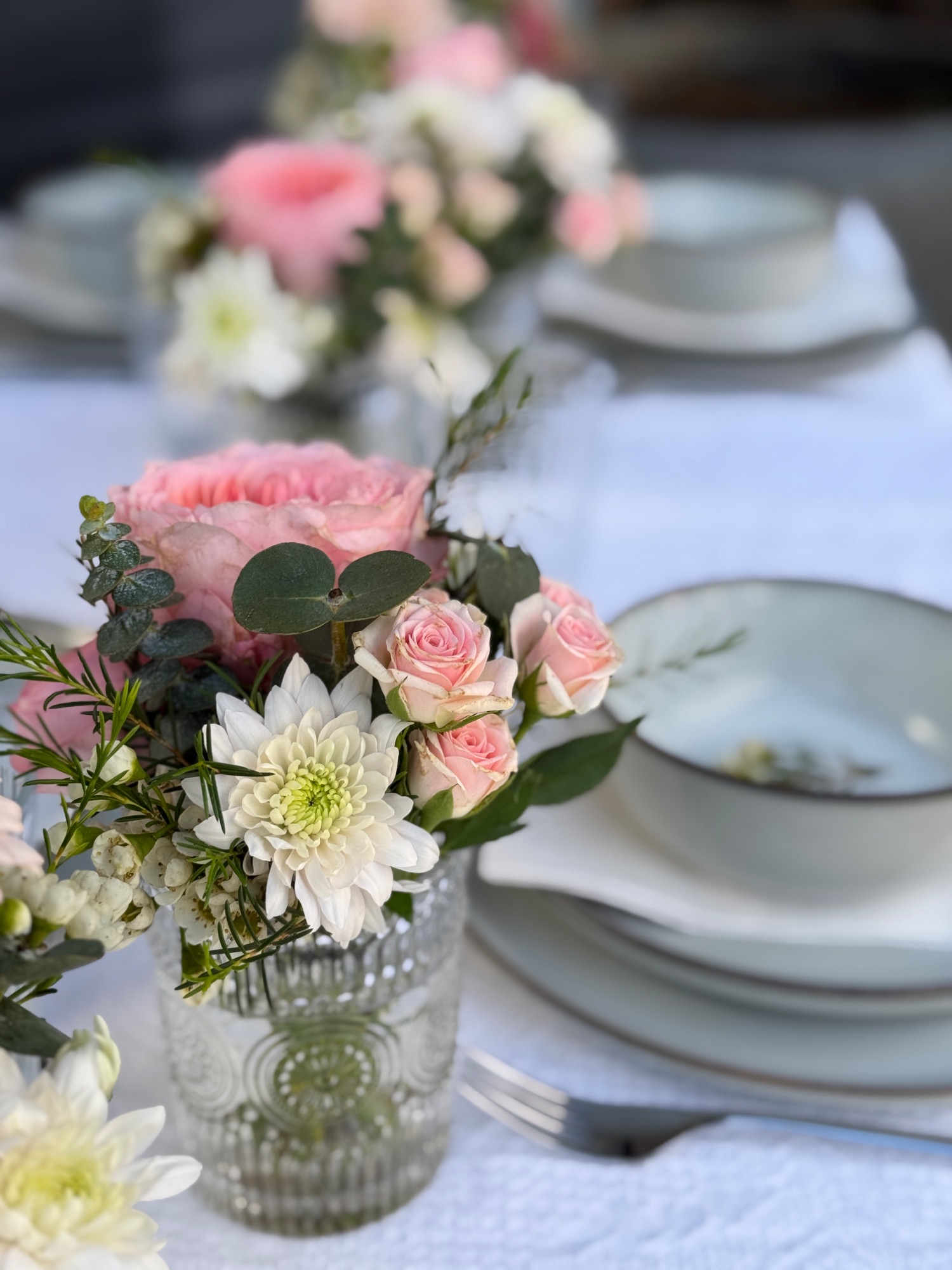 Ein mit Blüten geschmückter Tisch wirkt festlich und schafft eine stimmungsvolle Atmosphäre. Die Würde und Wertigkeit des besonderen Anlasses wird unterstrichen.